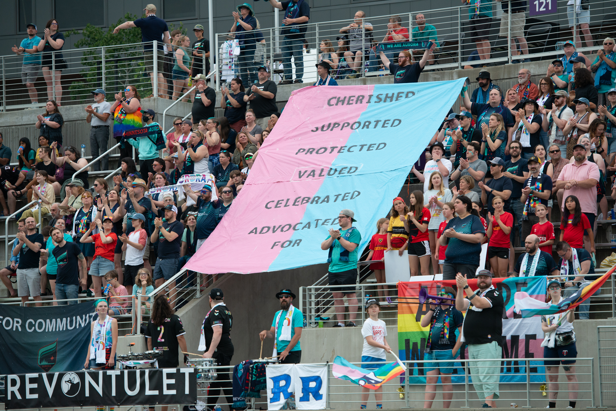 While Aurora proved they can do it under the dome of Stillwater's St. Croix Valley Rec Center on a pitch lined with youth soccer goals and lacrosse creases, the squad was eager to return to their true home on Saturday, celebrating Pride at a sold-out TCO Stadium. Aurora repeatedly tested the spectator limits of the Minnesota Vikings practice facility in 2022 and their sophomore year has been no different, despite all the Wednesday evening matchups. Saturday's match drew a season high 6,423 fans. Alas, the adversity continued under a nearly smoke-free sky.