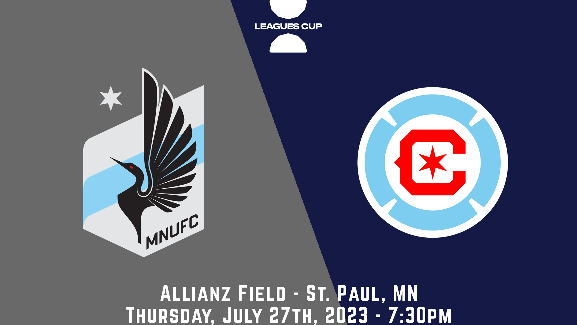 Leagues Group Stage - Match 2MIN vs. CHIAppleTVAfter a shorthanded 4-0 rout of Liga MX's Club Puebla on Sunday, Minnesota United FC will close out Leagues Cup group play against Chicago Fire on Thursday night. After ceding 'hosting' duties to Puebla at a neutral Allianz Field, the Loons will reclaim proper hosting duties in this home match against their cross-conference neighbors. A win against Chicago, whether in regulation (3 points) or penalty shootout (2 points), will secure the Loons' passage to the next round of the 2023 Leagues Cup.