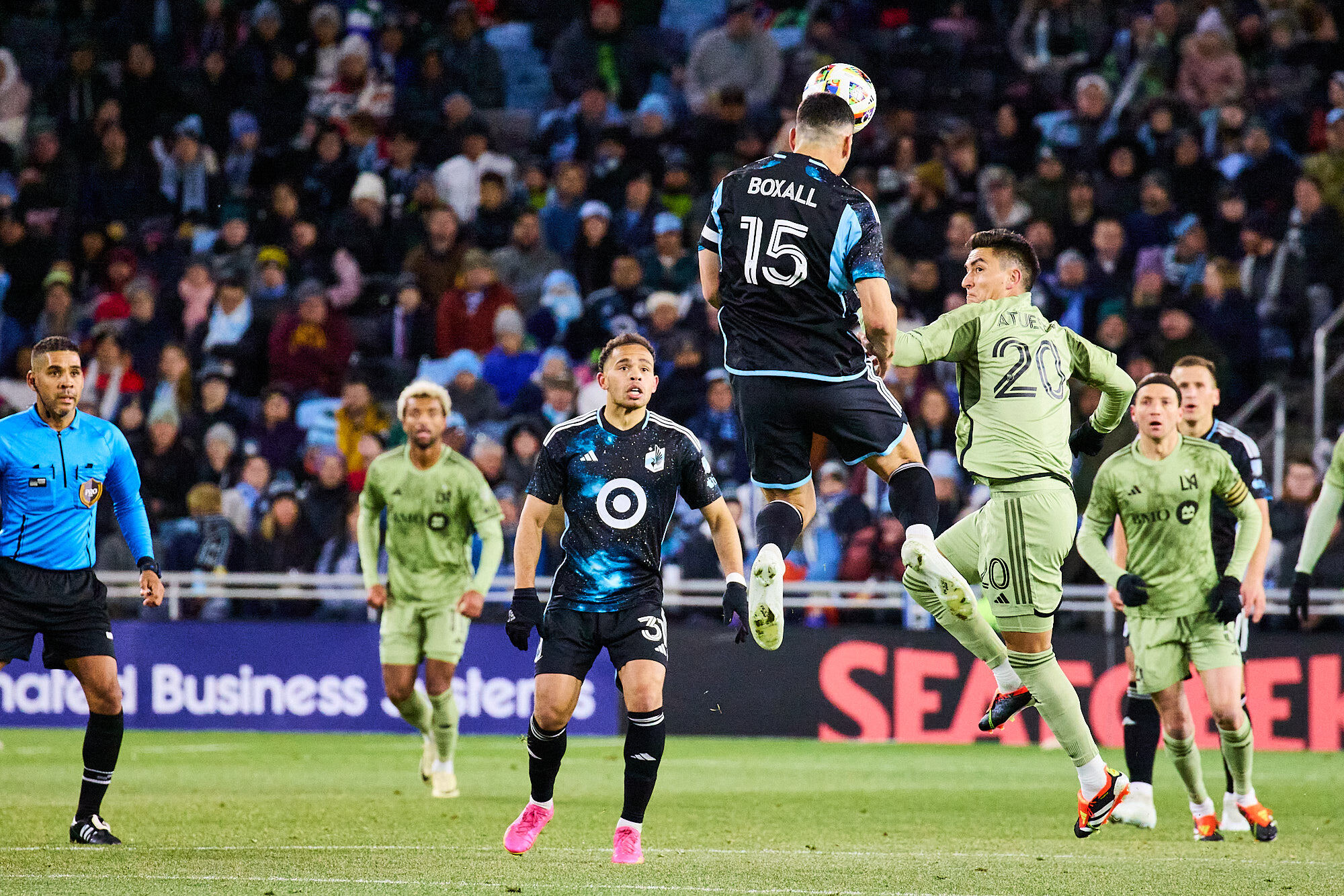Fouls. This match was close, tense, and physical. Early on, in a battle between defensive midfielders, Ilie Sánchez tackled Wil Trapp later than a Los Angeles city bus. On a Loons corner, Tillman and Lod were jostling for position. Lod overran Hollingshead, Sang Bin overran Bogusz; then Bogusz kicked back at Sang Bin. Hollingshead put his arm around Pukki's neck as Pukki pushed both out of bounds. Who doesn't want to hug Pukki? Both teams had two yellow cards a piece, but LAFC did win in one statistical category: 17 fouls committed to the Loons' 15.