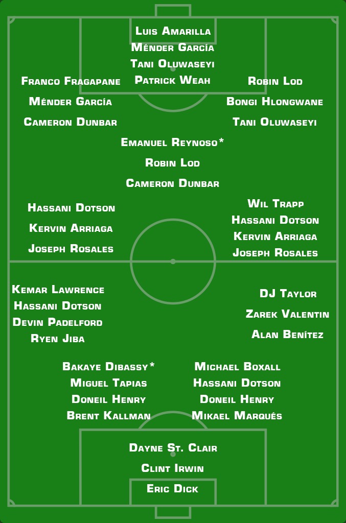 So trying to speculate on a possible starting XI or depth chart for the team is a bit difficult. What is offered below is presented as a 4-3-3, more for convenience than anything else. In pre-season the team has experimented with a 4-2-3-1, a 4-3-3, a 4-4-2, and a 3-5-2; as long as Rey is out, it seems a 4-2-3-1, a 4-3-3, and a 4-4-2 are all possible. The preferred back five is most likely Dayne St. Clair, Kemar Lawrence, Tapias, Michael Boxall, and DJ Taylor. Taylor picked up a bit of a knock early in pre-season and so is working his way back into full fitness; Alan Benítez impressed last season, but Zerek Valentin has been getting a lot of time in these early scrimmages. With Rey absent and Dotson’s recovery not yet known - he got his first minutes of preseason in the final game at Coachella - the midfield has the most questions. Wil Trapp remains the preferred defensive midfielder, while Robin Lod has become the preferred central playmaking midfielder. The other one or two midfield spots is still open: Heath has had high praise for Arriaga all pre-season, while also being quite excited by Dotson’s progress and possible return. While they play with a bit different style, they are positionally quite similar and so may be interchangeable.