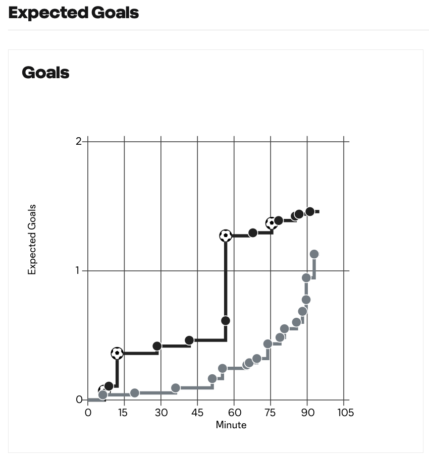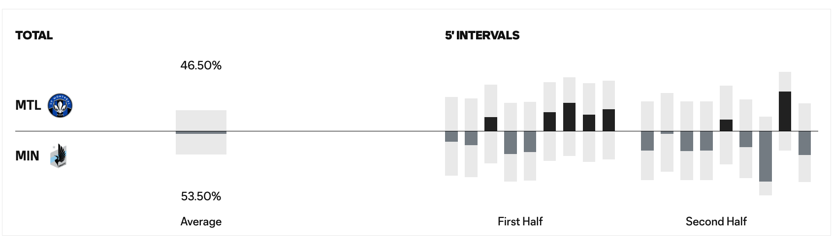 Statistically, the case could be made, as Minnesota had, in a rare show of form, the better of possession 53.5% to 46.5%, while taking 16 shots to Montréal’s 13. Montréal got more of its shots on target, 8-4, but Minnesota had better control and passing in its attacking half and final third, winning both those with 72.8% to 64.3% success and 75.5% to 58.7% success respectively. And although they were under on expected goals, 1.1xG to 1.5xG, that was much less than the final score.